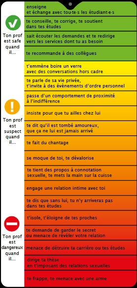 Parmi les violentomètres spécifiques aux relations universitaires (profs/étudiant.es, directeurs.rices de thèse/doctorant.es) :